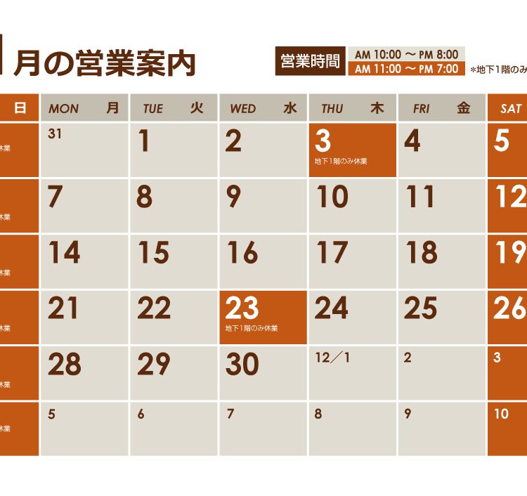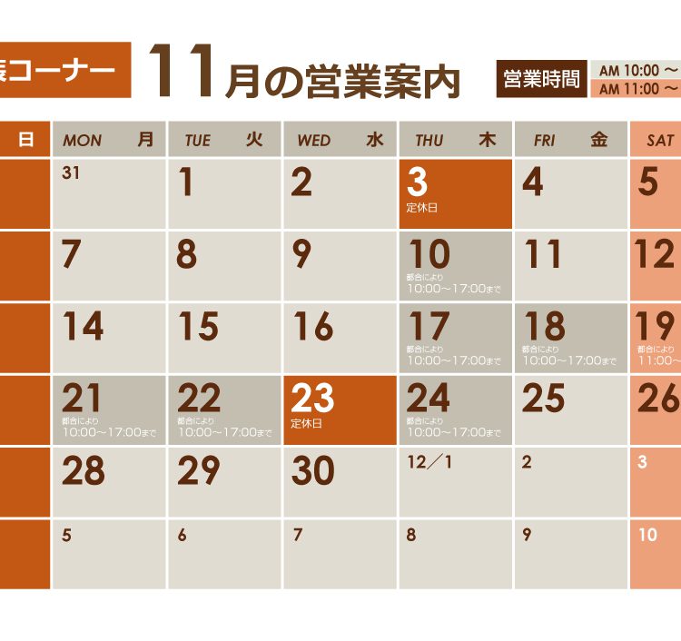 11月営業日カレンダー