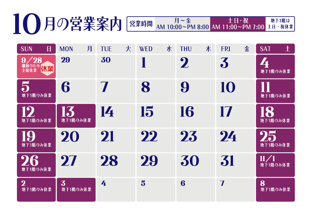 レモン画翠 御茶の水本店 2025年10月の営業日をご案内致します。