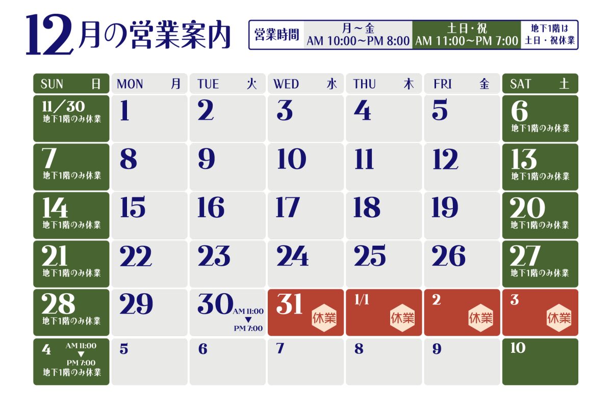 レモン画翠 御茶の水本店 2025年12月の営業日をご案内致します。
