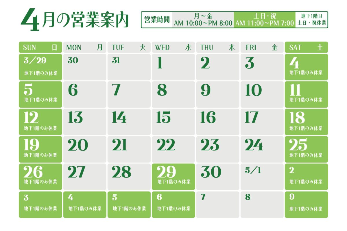 レモン画翠 御茶の水本店 2026年4月の営業日をご案内致します。