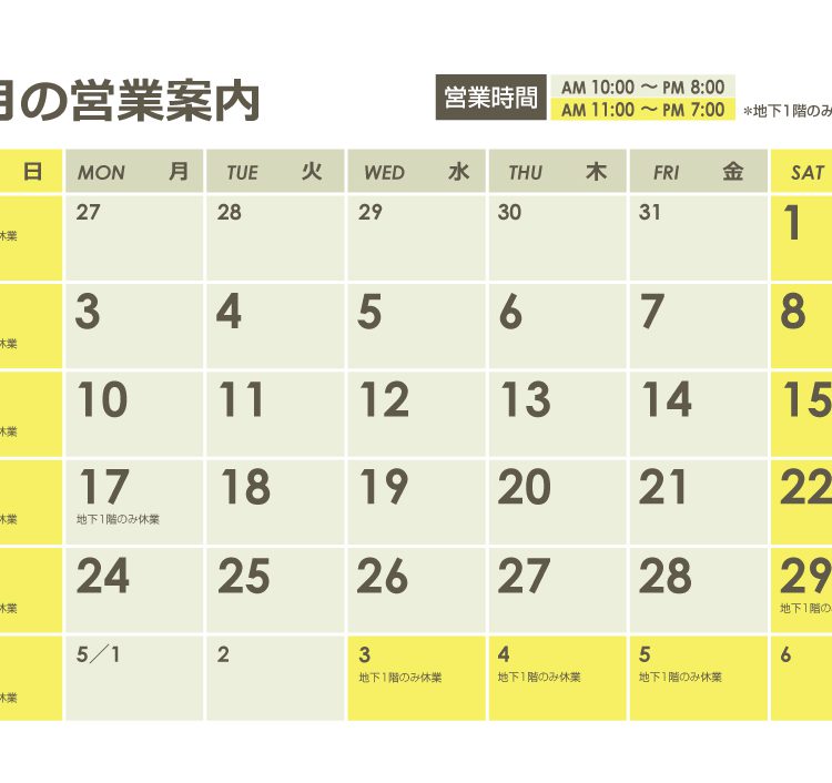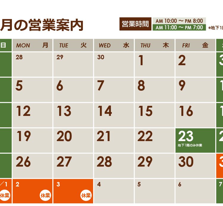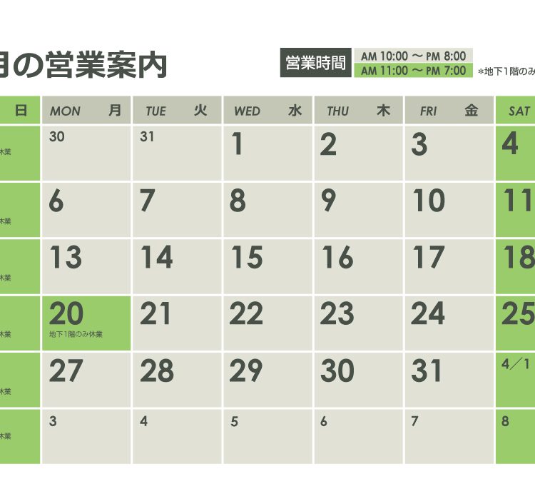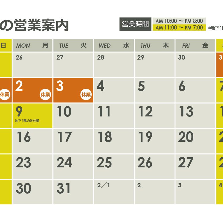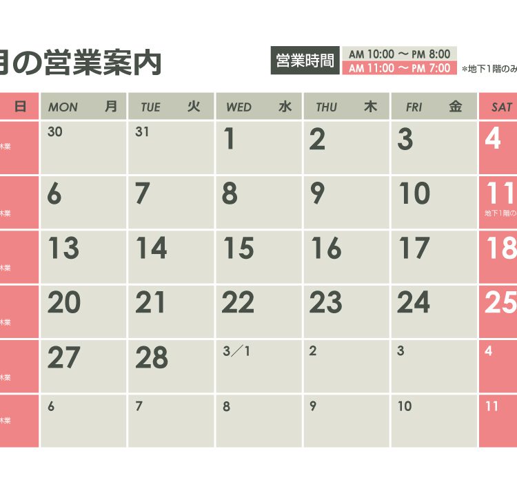 臨時閉店や営業時間変更等、営業に関するご案内です