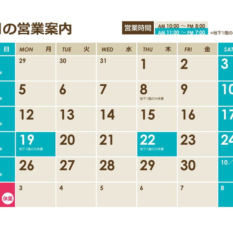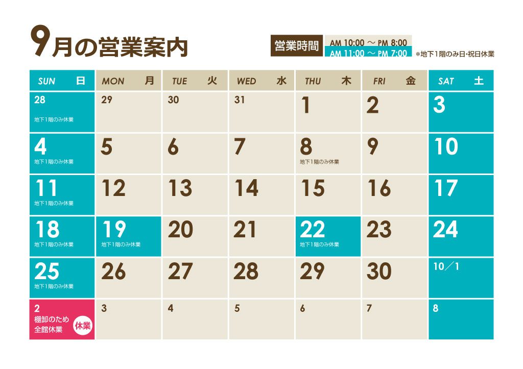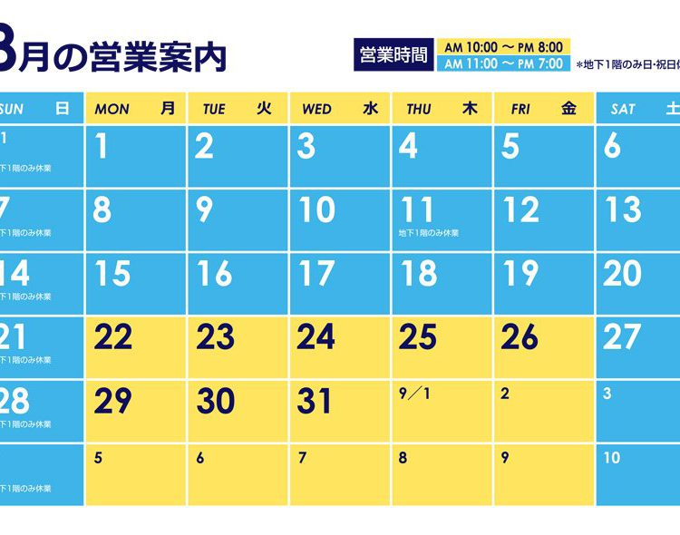8月の営業時間短縮・額装コーナー休業日のお知らせ